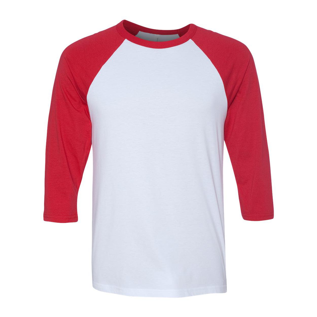 BELLA + CANVAS - Unisex Three-Quarter Sleeve Baseball Tee - 3200 - White/ Red