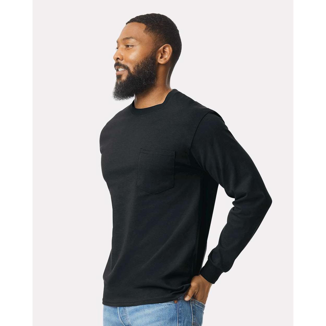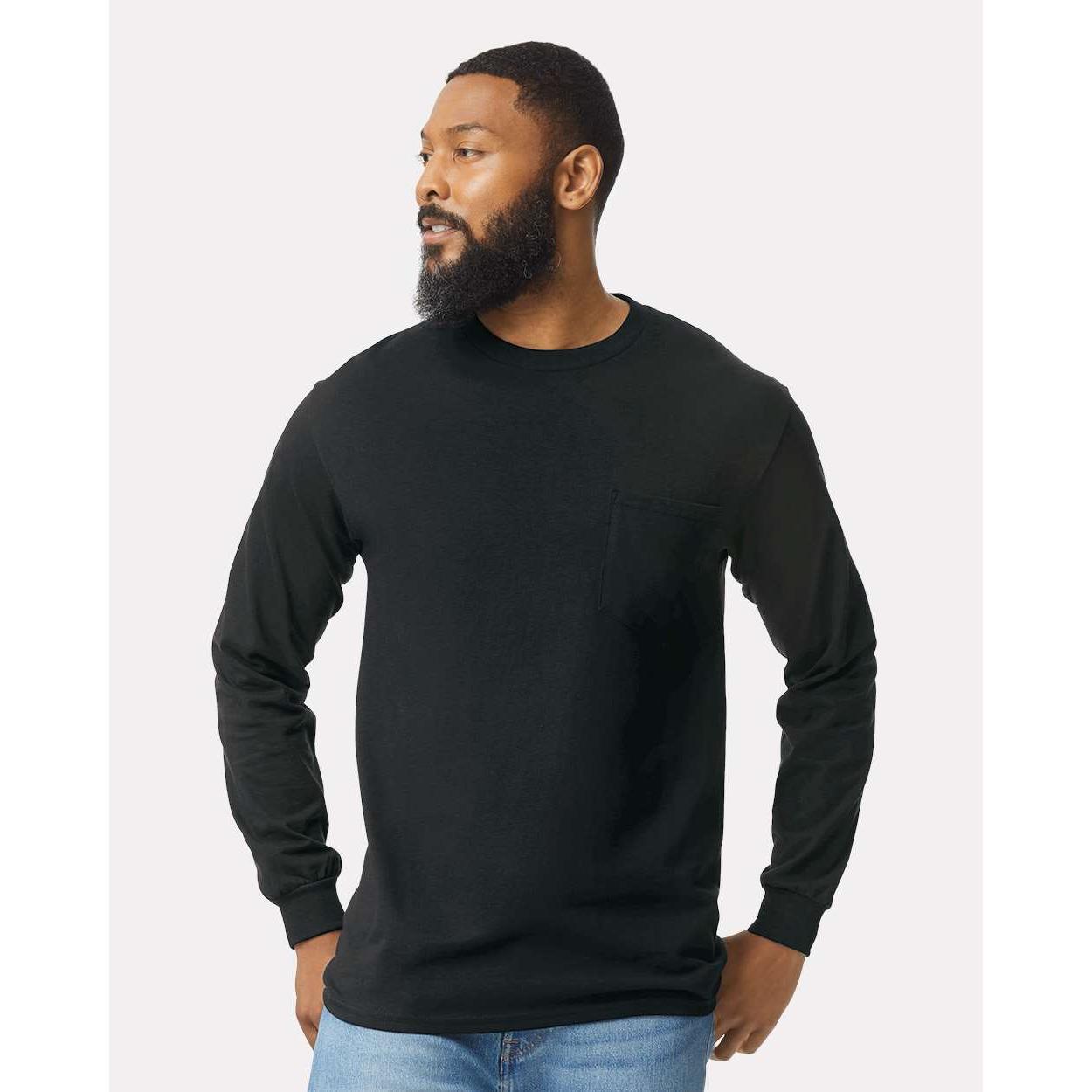 Gildan - Unisex Ultra Cotton® Long Sleeve Pocket T-Shirt - 2410 - Black